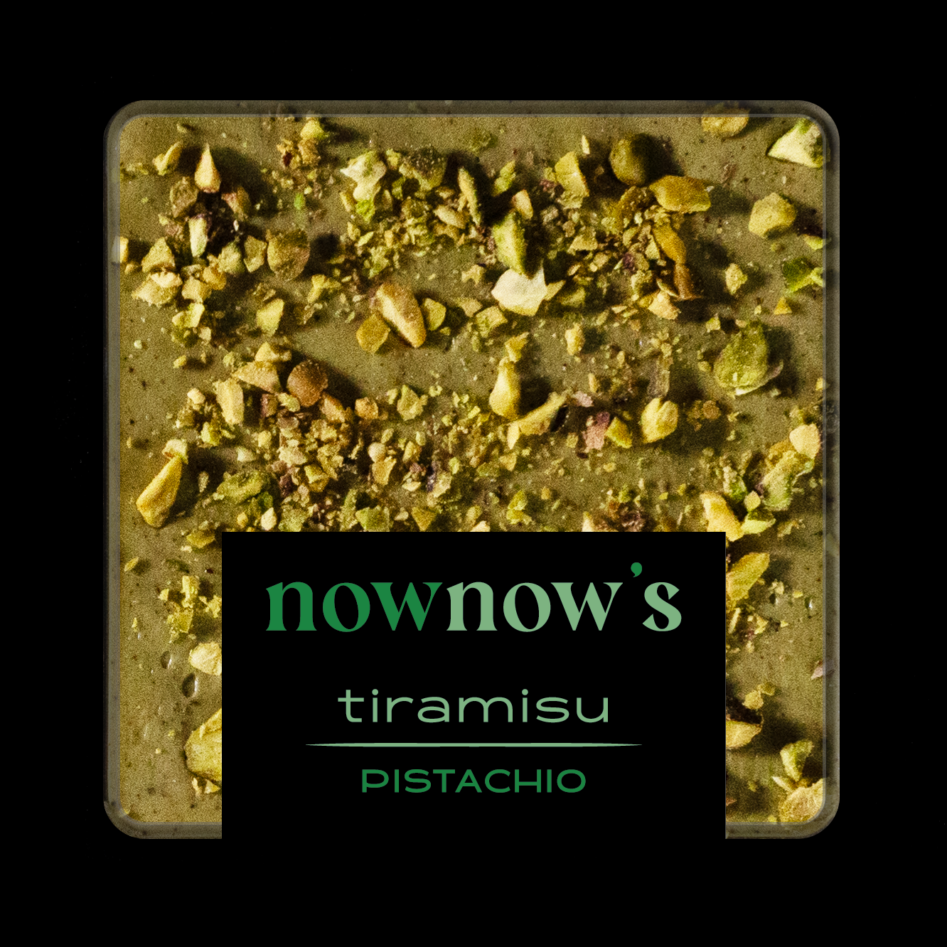 Coffee-soaked ladyfingers combined with vanilla bean mascarpone and pistachio filling, garnished with chopped pistachios.